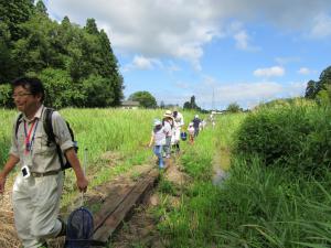 松沢集落では、区民の利用者を増やし、健康寿命延伸につなげるため、散策道の整備および浮き橋(虻無い橋)の設置と周辺の植物調査を行いました。