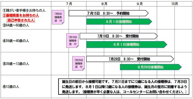 ◎64歳以下で基礎疾患をお持ちの人は、自己申告いただくことにより、接種券を優先的に発送します。
