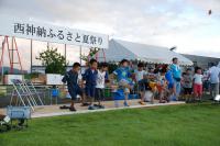 平成 29年8月19日(土曜日)、今年の西神納地域ふるさと夏祭りは、会場を変更しパルパーク神林の芝生広場を会場に開催しました。当日は、午前中に雨が降り、会場の変更が心配されましたが、無事屋外で実施することができ、アトラクションでは、子どもたちによるスリッパ飛ばし大会が行われ、スリッパを飛ばす度に、会場に笑い声や歓声が上がっていました。