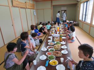 7月27日(土曜日)、早朝に環境整備のボランティア活動として、農村環境改善センター周辺の草取り作業を行い、午後からは岩船駅前ふれあいセンターを会場に、集落交流会を行いました。朝の早い時間から参加者は熱心に作業を行いました。また、午後からの集落交流会では、子どもたちとのビンゴゲーム大会、バーベキューなどを通して、集落内の親睦を深めました。