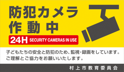 村上市立小・中学校 防犯カメラ作動中看板の設置